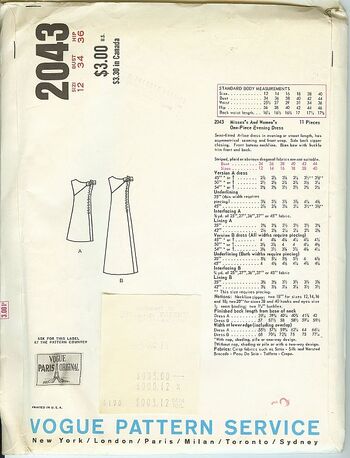 Vogue 2043 Vintage Sewing Patterns Fandom